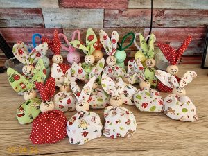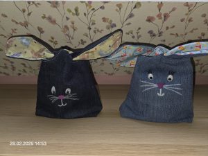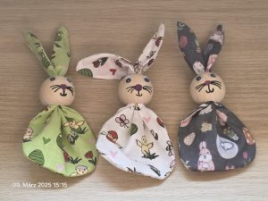 Die Osterhäschen werden eigentlich mit Granulat gefüllt und als Deko aufgestellt. Man kann sie aber mit ein paar kleinen Ostereiern füllen und als Geschenkverpackung nutzen. Dazu werden die Ohren aus dem Kopf gezogen und durch die kleine Öffnung befüllt.