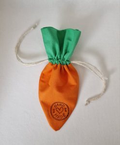 Die kleine Ostermöhre als Geschenkverpackung für ein paar Süßigkeiten zu Ostern. Das Orange der Möhre ist ca. 15 cm hoch.