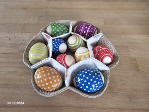 Das ist Lotte, geeignet als Osterhuhn zum Aufbewahren der Ostereier oder auch Süßigkeiten oder aber einfach nur als Tischdeko oder Aufbewahrung für Eure (gekauften) Eier oderKrimskrams, den man immer so hat.